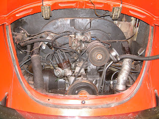 after a little tinkering and a proper service, the original 1500 single port motor fired up and ran really nice! however, we had to pull the motor to fix a few oil leaks as this bug was certainly marking its spot..